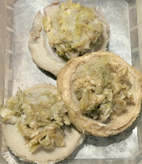 Ces chaussons fourrés de verdure sont parfaits pour accompagner une soupe au dîner. Préparés en grande quantité, ils sont congelés avant d'être réchauffés au grille-pain. Pour les artichauts, je n'ai utilisé que la chair récoltée à partir des feuilles afin de conserver les fonds pour une autre recette. Sinon, on peut insérer des fanes de betterave, de navet, de brocoli ...
